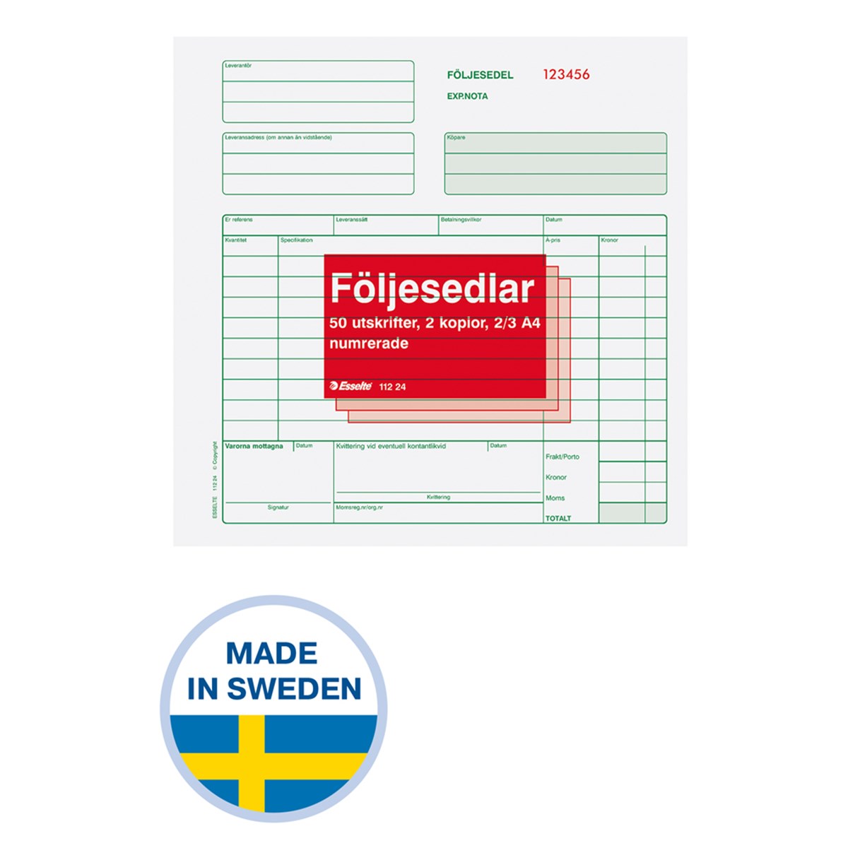 Följesedlar Esselte 2/3 A4 numrerade